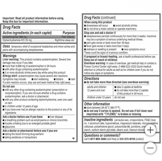 Tylenol PM Extra Strength 225 Caplets Pain Reliever Sleep Aid Nighttime