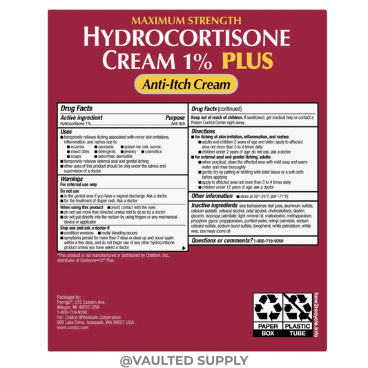 Kirkland Hydrocortisone Cream 1% PLUS 8 Tubes 2oz Each Max Strength Anti-Itch