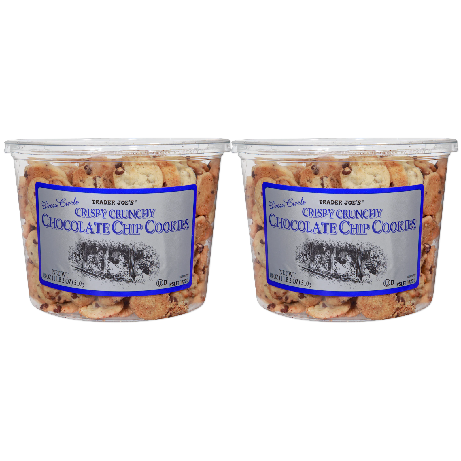 - Two (2) tubs of Trader Joe's Dress Circle Crispy Crunchy Chocolate Chip Cookies